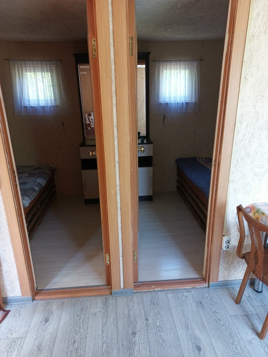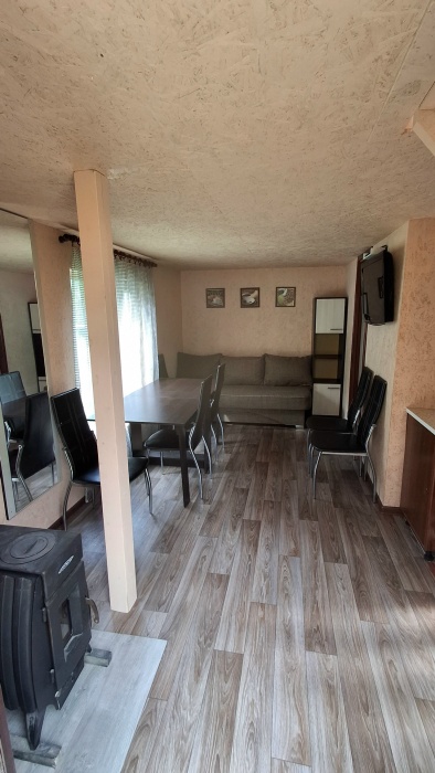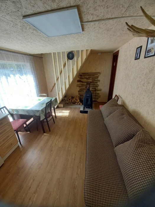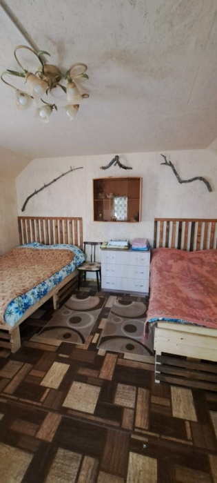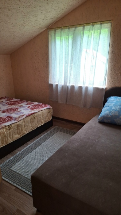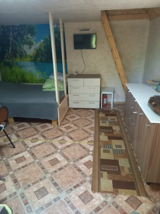 Дом рассчитан на комфортное проживание до 5-ти человек. В доме 2 изолированных комнаты и кухня-гостинная с дополнительным 5-ым местом. Есть все для комфортного отдыха - телевизор, холодильник, постельное белье, необходимый набор посуды, мангал шампура, коптильня. У дома - мангальная зона, парковка, не подалеку пирс. Удобства на улице