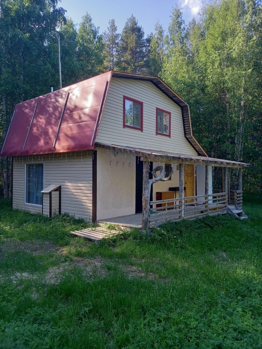 Дом рассчитан на компанию из 12 человек. 2 этажа, 4 комнаты и большая кухня - гостиная. Баня под одной крышей, пройти в баню можно не выходя на улицу. Укомплектован всем необходимым для комфортного проживания - телевизор, холодильник, постельное бельё, посуда. У дома - мангал, коптилка, свой пирс. Дом расположен отдалённо от остальных домов, что не будет Вам мешать наслаждаться отдыхом. Парковка возле дома. Удобства на улице.