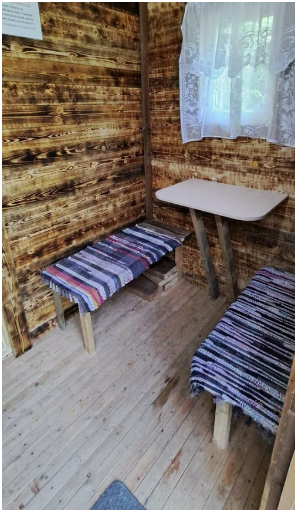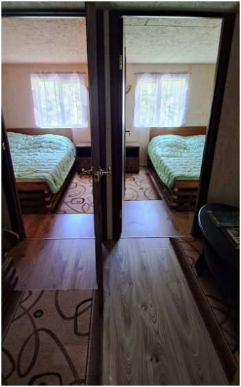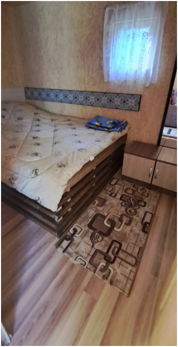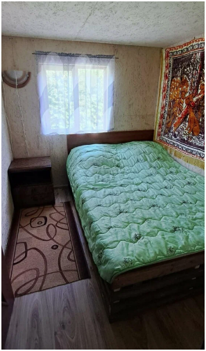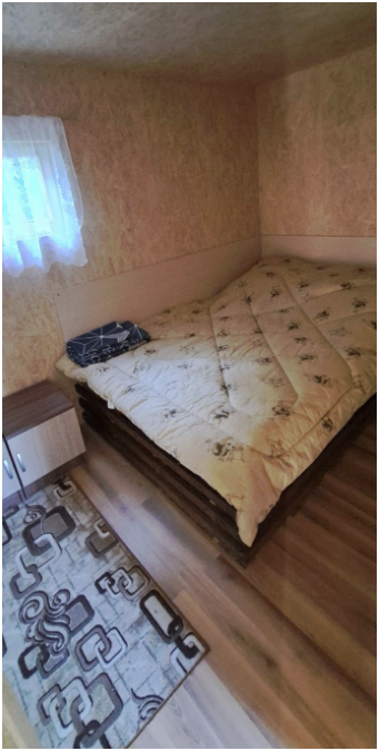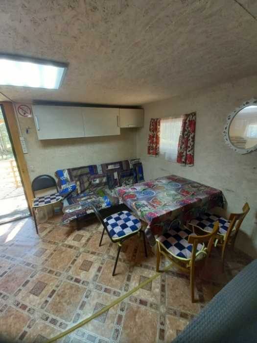 Дом рассчитан на комфортное проживание до 5-ти человек. В доме 2 изолированных комнаты и кухня-гостинная с дополнительным 5-ым местом. Есть все для комфортного отдыха - телевизор, холодильник, постельное белье, необходимый набор посуды, мангал шампура, коптильня. У дома - мангальная зона, парковка, не подалеку пирс. Удобства на улице.