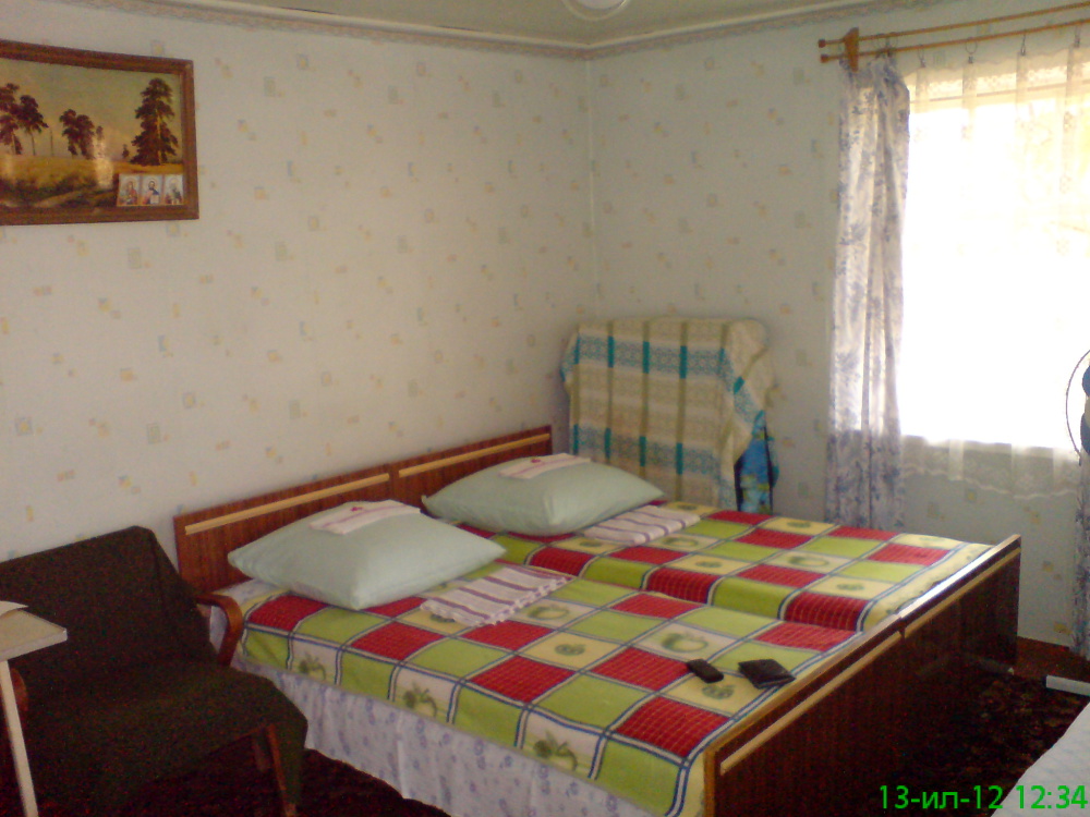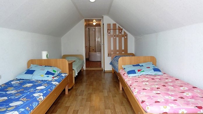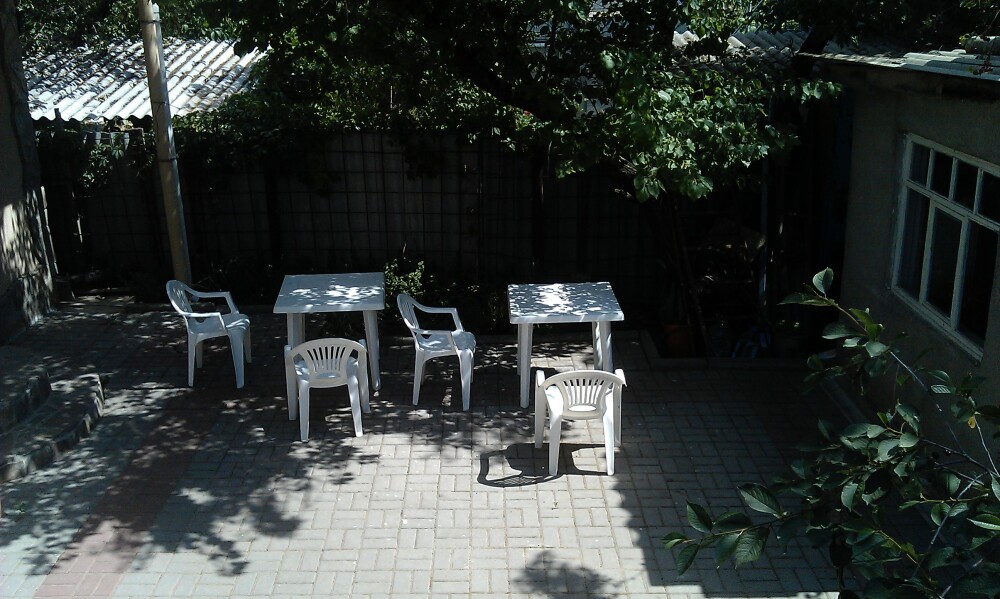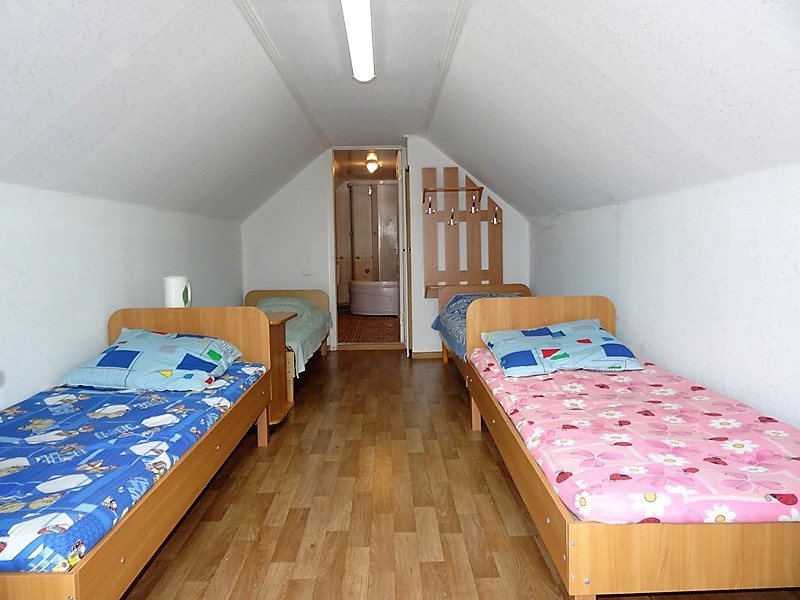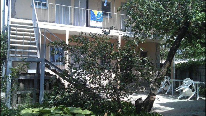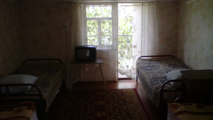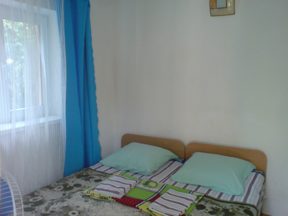 Номер в садовом домике старой постройки. В номере панцирные полуторные кровати с ватными матрасами, есть балкон, основной недостаток - неудобная крутая металлическая лестница, низкий потолок , удобства во дворе общие.