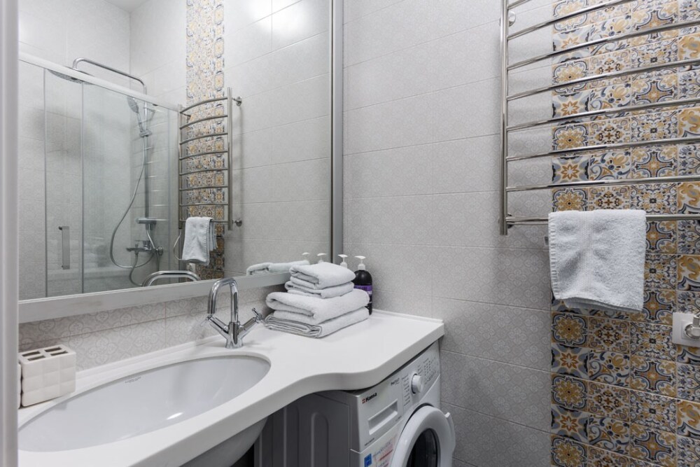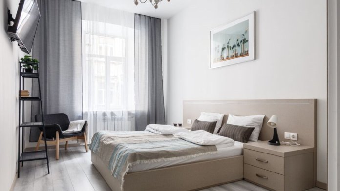 - Удобная двуспальная кровать формата King Size в спальне, диван на кухне.