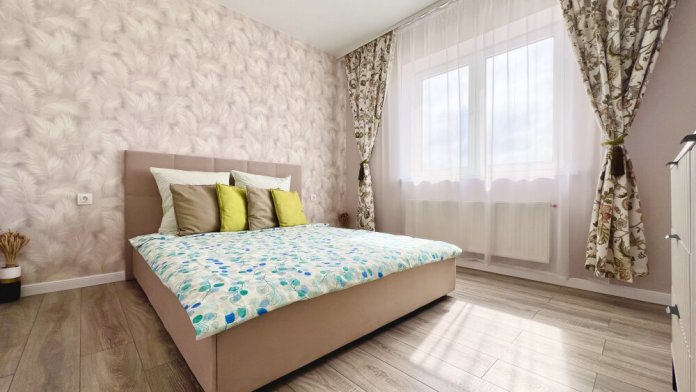 Дорогие клиенты, доброго времени суток. Представляем Вашему вниманию абсолютно новую, видовую 1-комнатную квартиру (евродвушку) с отличным ремонтом, чистую и очень уютную, находится в центре ФМР (Фестивальный микро район) в жилом комплексе «Цветы». Парковка под шлагбаумом, где удобно и безопасно оставить машину. Если Вы путешествуете с детьми, то они смогут весело провести время на оборудованной детской площадке (площадка очень большая в закрытом дворе с прорезиненной поверхностью для минимизации травм, есть футбольное поле, теннисные столы, горки, песочницы, качели, тренажеры, турники). Во дворе жилого комплекса есть кофейни, аптеки, магазины, маркетплейсы, салоны красоты и многое другое. В шаговой доступности остановки общественного транспорта, продуктовые магазины, кафе, банки, «Табрис». До центральной улицы Красная - всего 2,9 км.