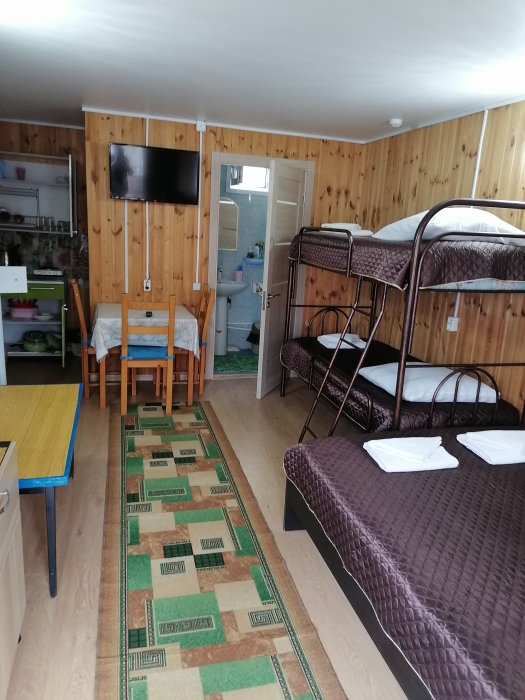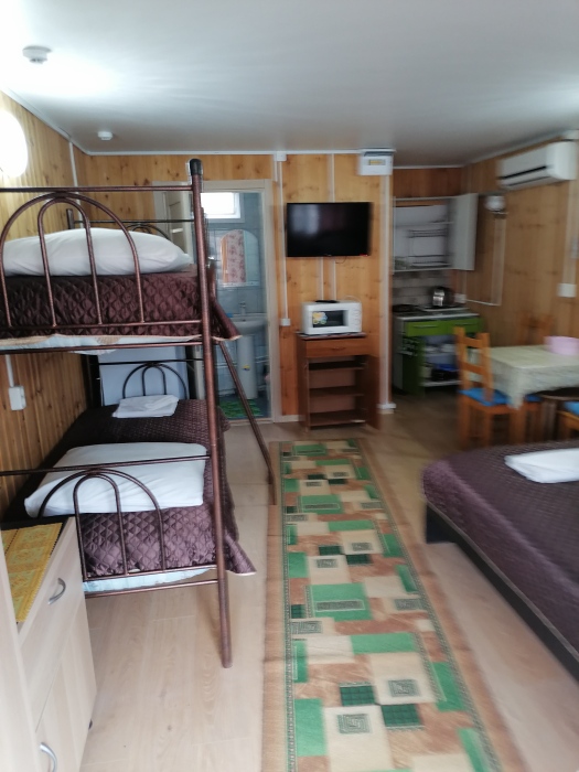 В номере есть все для комфортного отдыха холодильник, микроволновая печь, телевизор, шкаф, стол, стулья, электроплита, чайник, сплит система, посуда.