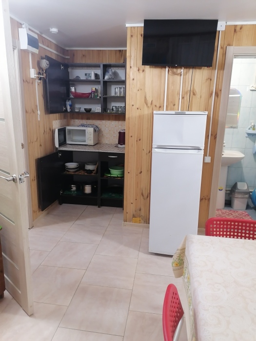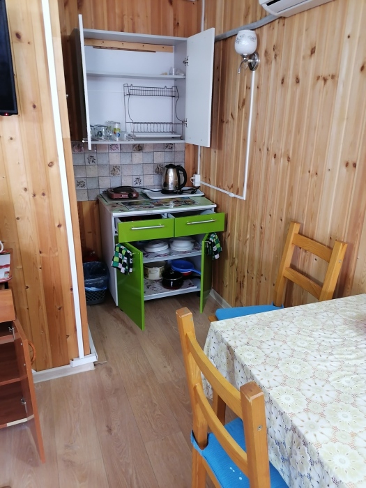 В каждом номере есть мини кухня, холодильник, микроволновая печь, чайник, электроплита, посуда, сплит-система.