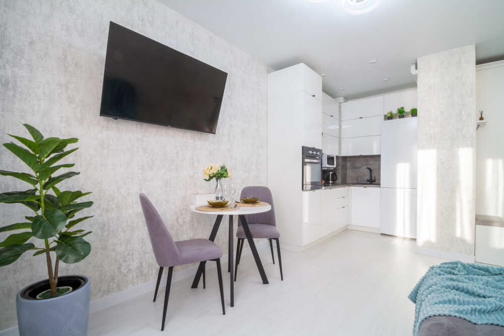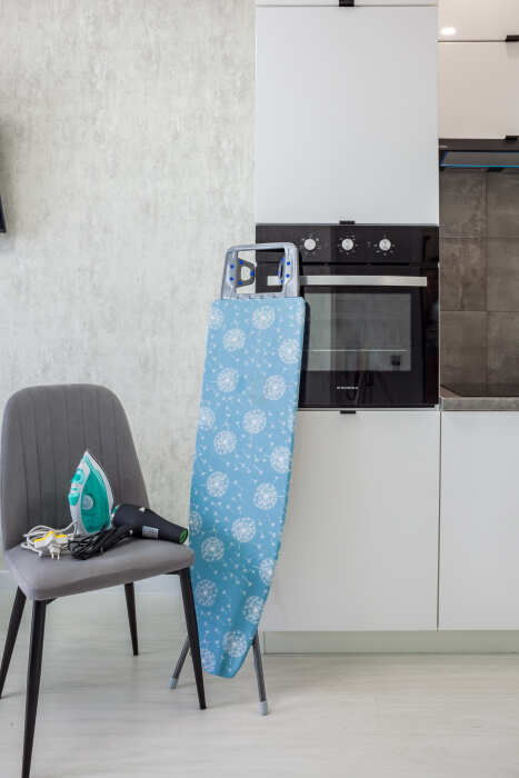 - бытовая техника (сплит-системы, варочная панель, духовой шкаф, чайник, микроволновая печь, холодильник, стиральная машина, 2 ТВ, утюг, гладильная доска, фен);