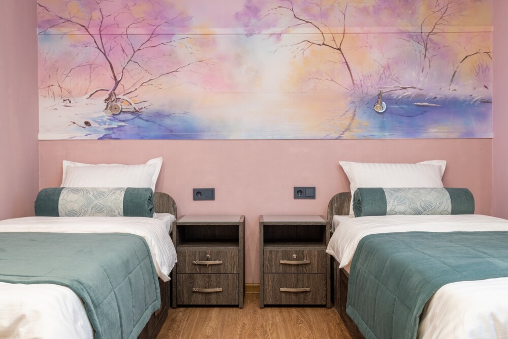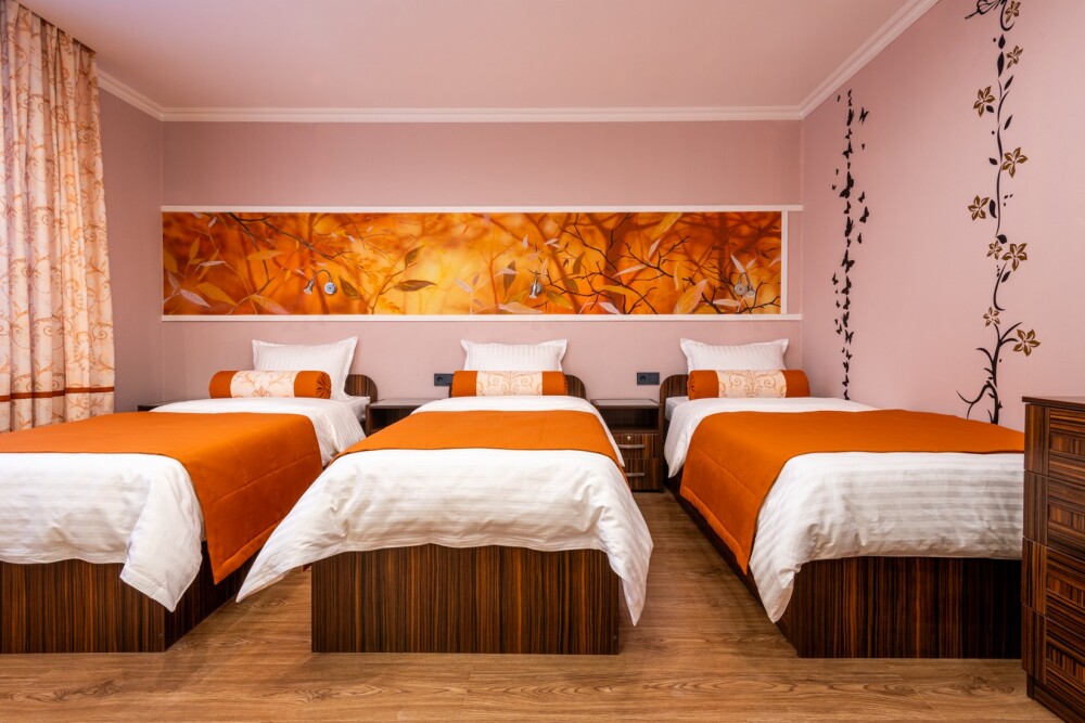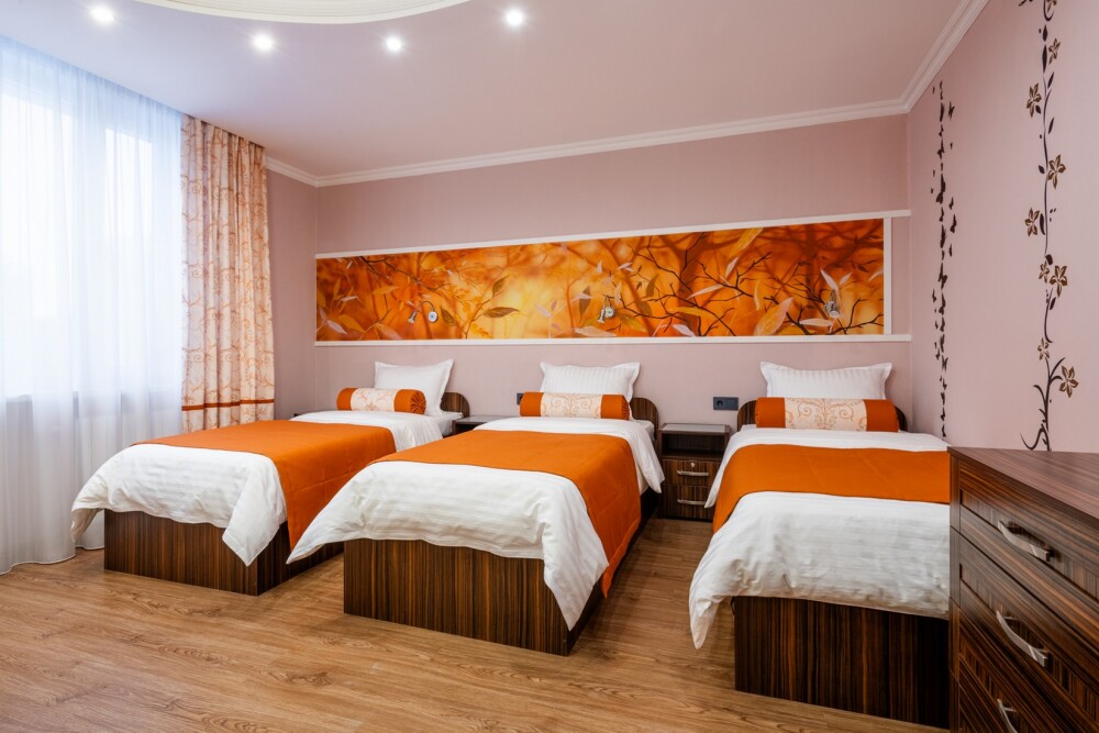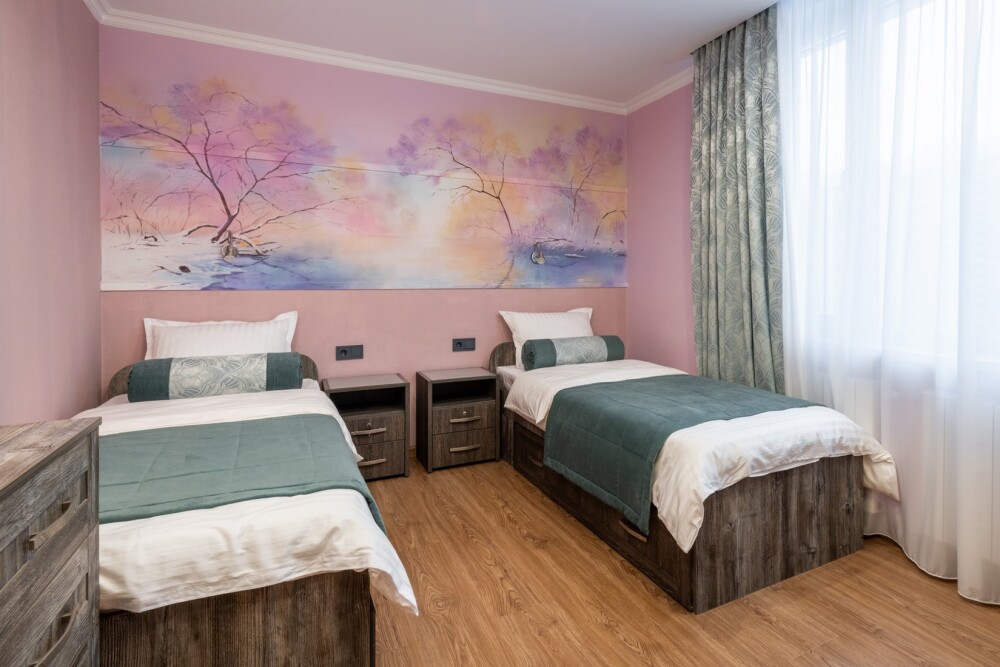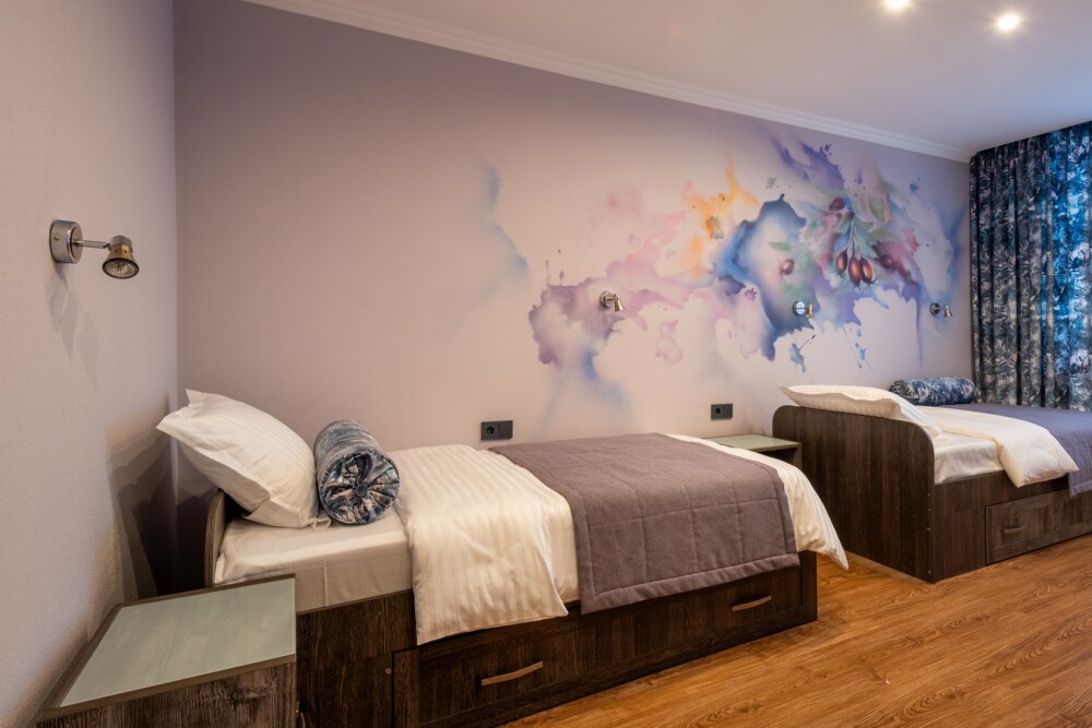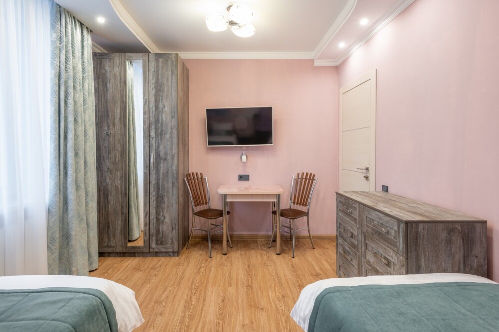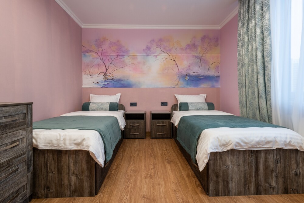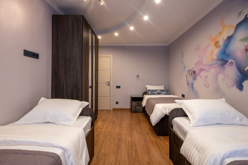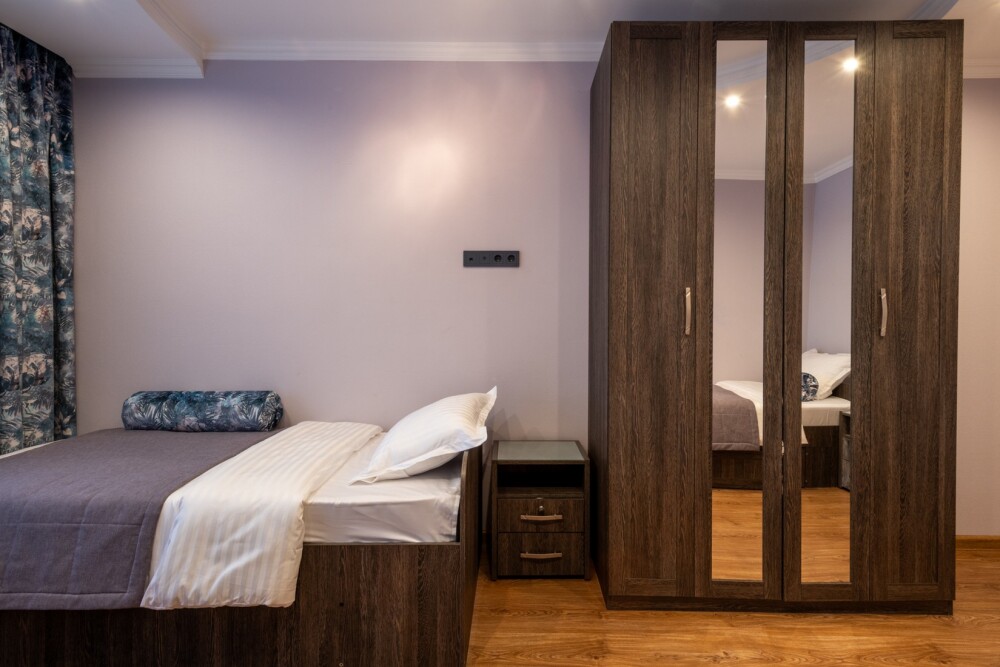 В стоимость входит: постельное бельё, полотенца, фен, тапочки, ванные принадлежности (шампунь, гель для душа, мыло).