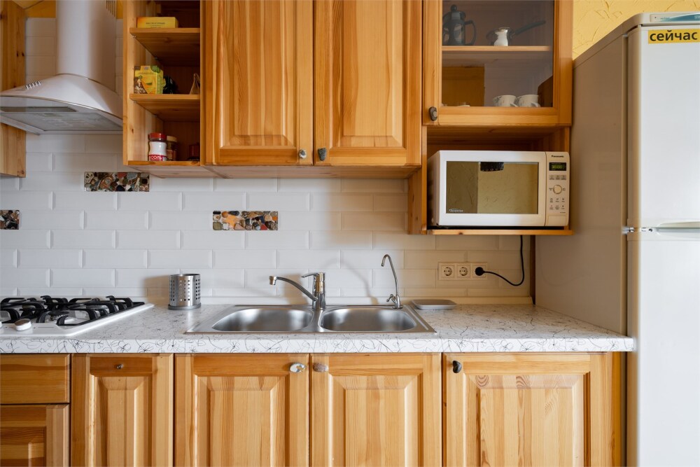 - Кухня: газовая плита, чайник, холодильник.