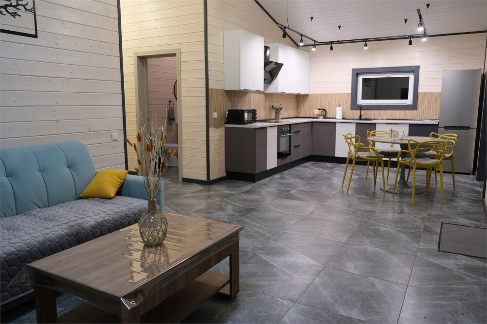 Рядом расположена вся необходимая для отдыха инфраструктура, для активных гостей – горнолыжный комплекс всего в 10 минутах езды, в пешей доступности Мичуринское озеро. Также легко и быстро можно доехать до оленьей фермы, конных клубов и веревочного парка, сетевых супермаркетов.
