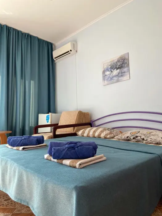 Варианты: 2-спальная кровать или две 1-спальных кровати. В номере: отопление, гладильная доска,