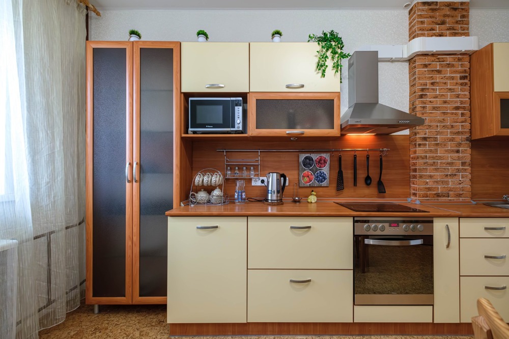 Комфорт: Кровать, 2 дивана, постельное белье; полотенца; стиральная машина, сушилка, гладильная доска, утюг; шкаф-купе; фен; кухонный гарнитур; холодильник; плита с духовкой; микроволновая печь свч; чайник; вся необходимая посуда для приготовления и приема пищи. Шторы blасkоut не пропускают свет, спать очень комфортно.