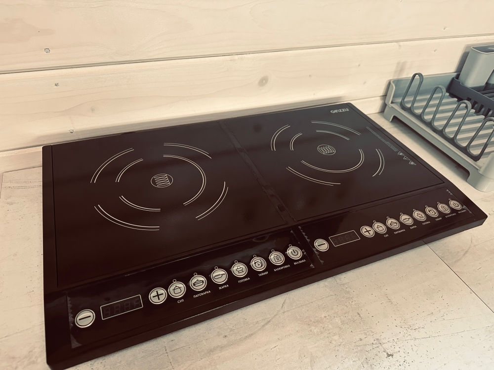- кухня оснащена холодильником, микроволновой печью, индукционной плитой на 2 конфорки, чайником.
