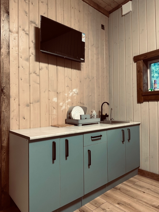 - кухня-гостиная с раскладным диваном, а также лофт-этажом со спальным местом 140/200 для 2 гостей, смарт-тв, wi-fi;
