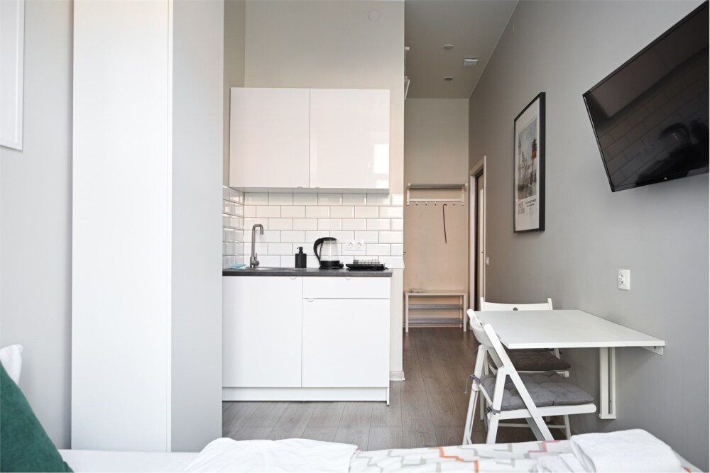 Студия в Центральном районе с санузлом и кухонной зоной для двух гостей рядом с метро «Чернышевская» и невским проспектом.