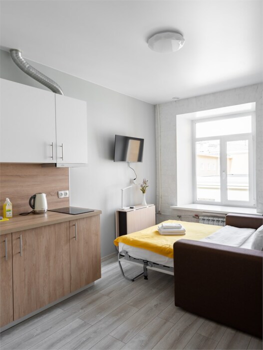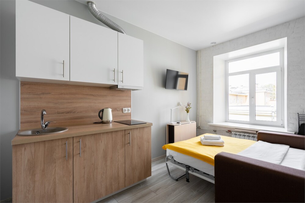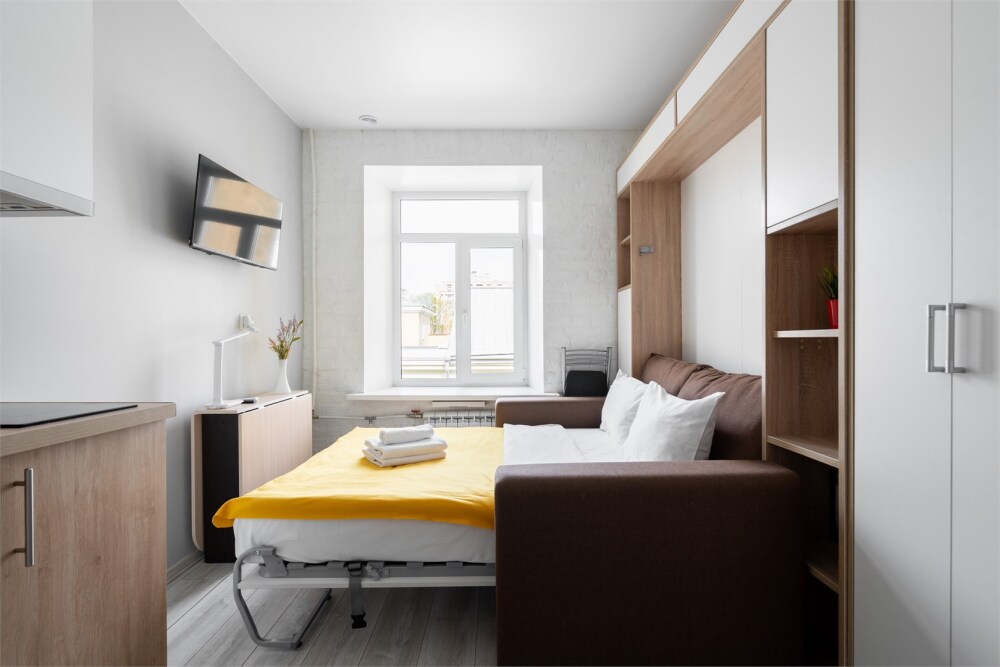 - Студия для 2 гостей площадью 13 м2.