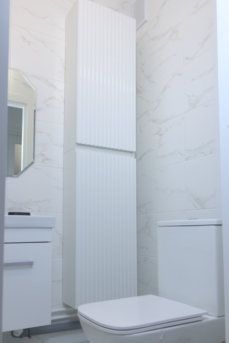 Современные апартаменты площадью 58 м² расположены в новом жилом комплексе «Astra Marine» на набережной Невы.