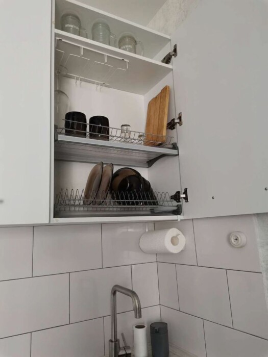 - Шкаф для вашей одежды, стол, бесплатный Wi-Fi, ТV, кабельное телевидение, стиральная машина, кондиционер, холодильник, микроволновая печь, чайник, посуда, гладильная доска, утюг, фен, сушилка для белья, полотенца.