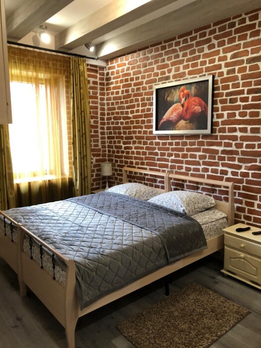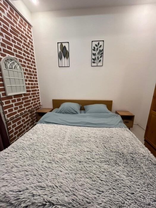 Три уютные спальни оформлены в теплых тонах. В одной из двух спален, кровать с возможностью разделения на два места.