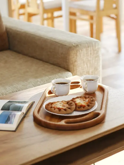 Оформлен в скандинавском стиле и рассчитан на проживание 6 человек (дополнительно может быть предоставлена детская кроватка).