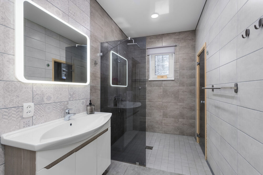 Отопление происходит с помощью водяного теплого пола, температуру в доме Вы всегда сможете отрегулировать с помощью термо-датчика.