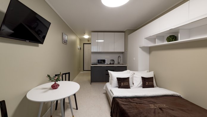 В квартире с комфортом могут разместиться два человека. Кухня оборудована всем необходимым для приготовления вкусных обедов. В квартире имеется вся необходимая бытовая техника: холодильник, стиральная машина, электрический чайник, СВЧ, фен, утюг, гладильная доска, необходимая посуда. Для приятного времяпрепровождения к вашим услугам безлимитный интернет Wi-Fi и кабельное TV.
