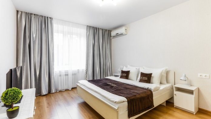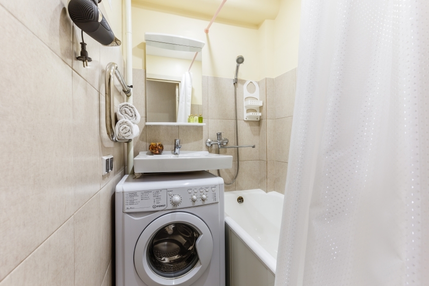 В большой светлой комнате находится диван, столик, а в спальне большая кровать и шкаф. Кухня оборудована всем необходимым для приготовления вкусных блюд. В квартире имеется вся необходимая бытовая техника: телевизор, холодильник, стиральная машина, электрический чайник, СВЧ, фен, утюг, гладильная доска, необходимая посуда. Для приятного времяпрепровождения к вашим услугам безлимитный интернет Wi-Fi и кабельное TV.