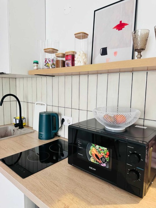 Квартира оборудована всем необходимым для комфортного отдыха. К вашим услугам мы предоставляем высокоскоростной Wi-Fi и ЖК телевизор с большим пакетом каналов, набор косметических принадлежностей, всю необходимую бытовую технику, посуду и столовые приборы.