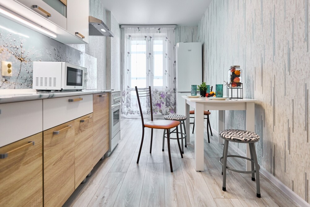 - Полноценная кухня (холодильник, посуда, плита).