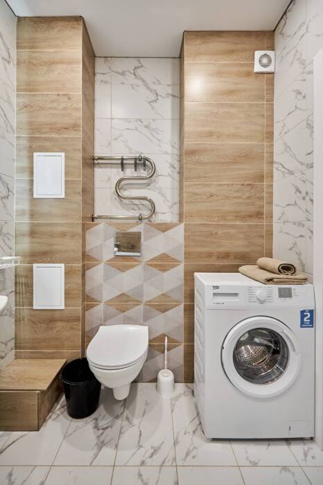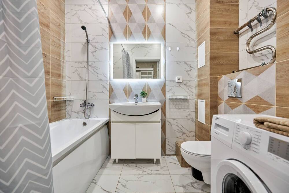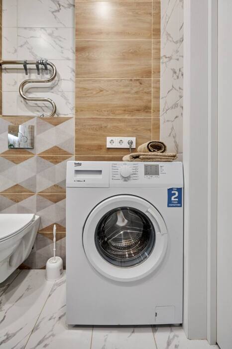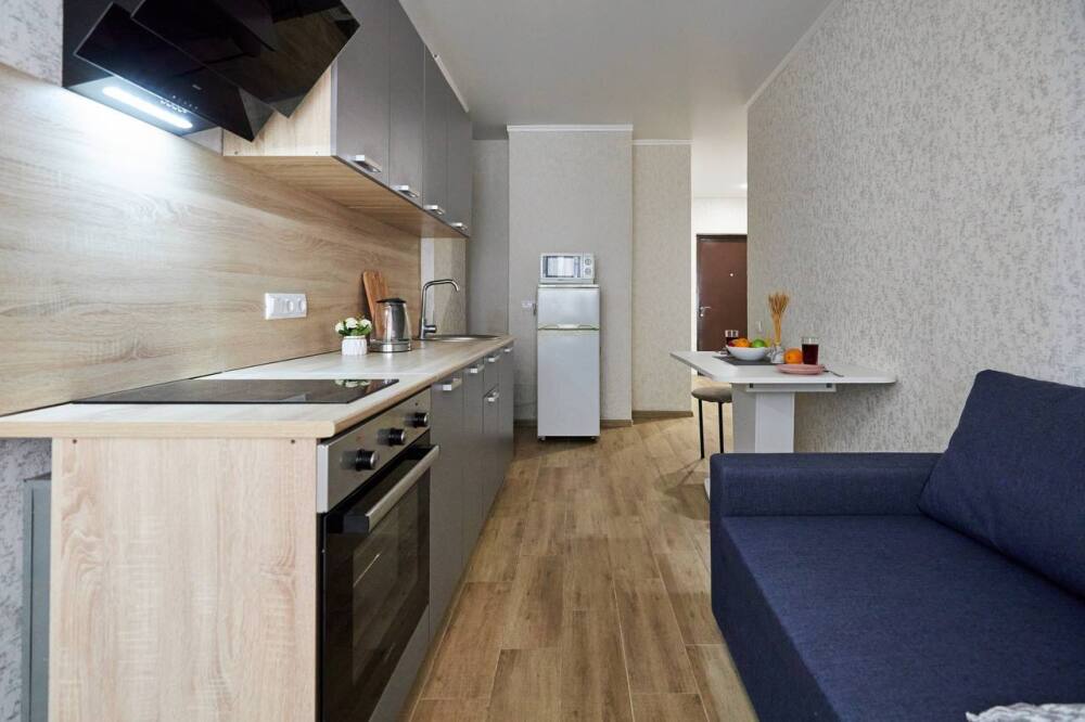 – ТВ, интернет, wi-fi, стиральная машина, полноценный двухкамерный холодильник, утюг, фен, посуда для приготовления еды.
