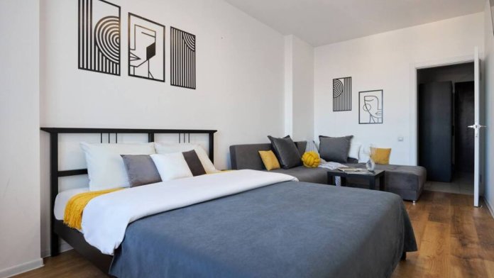 - Двуспальная кровать 160×200 см с ортопедическим матрасом;