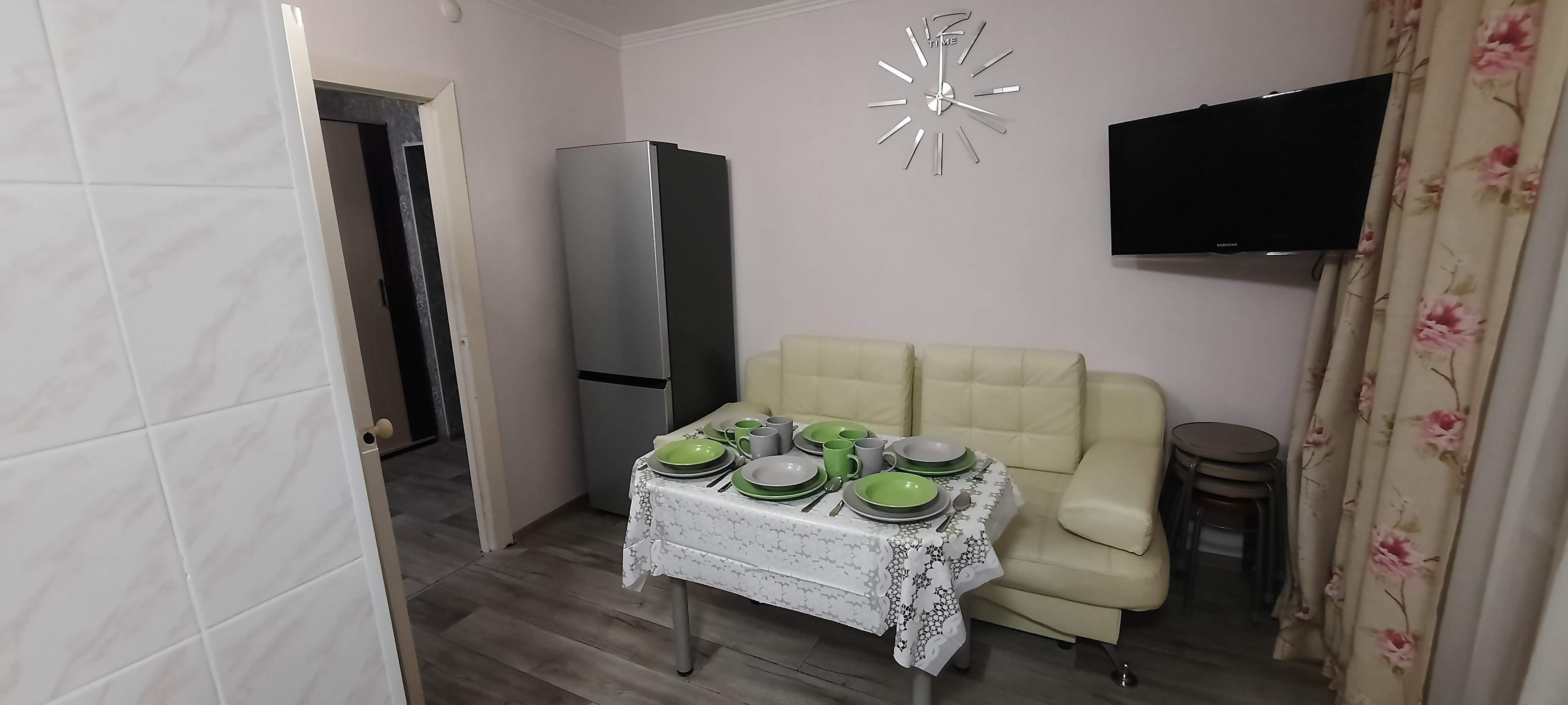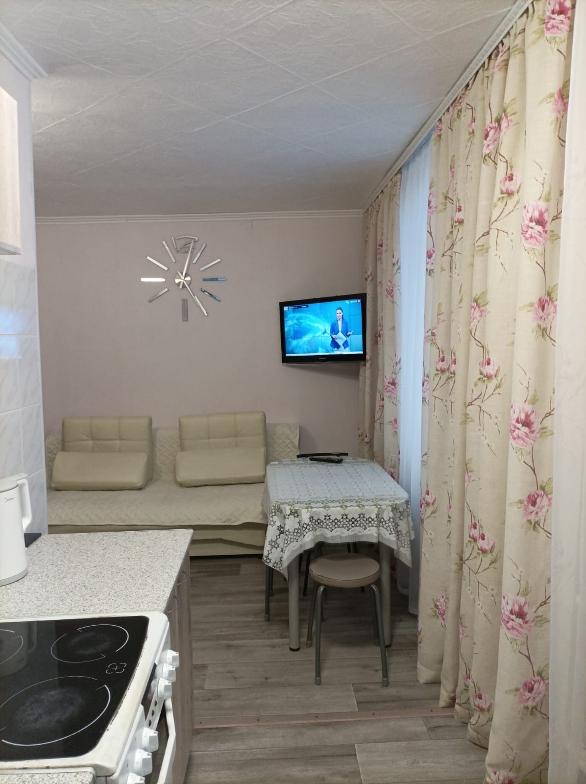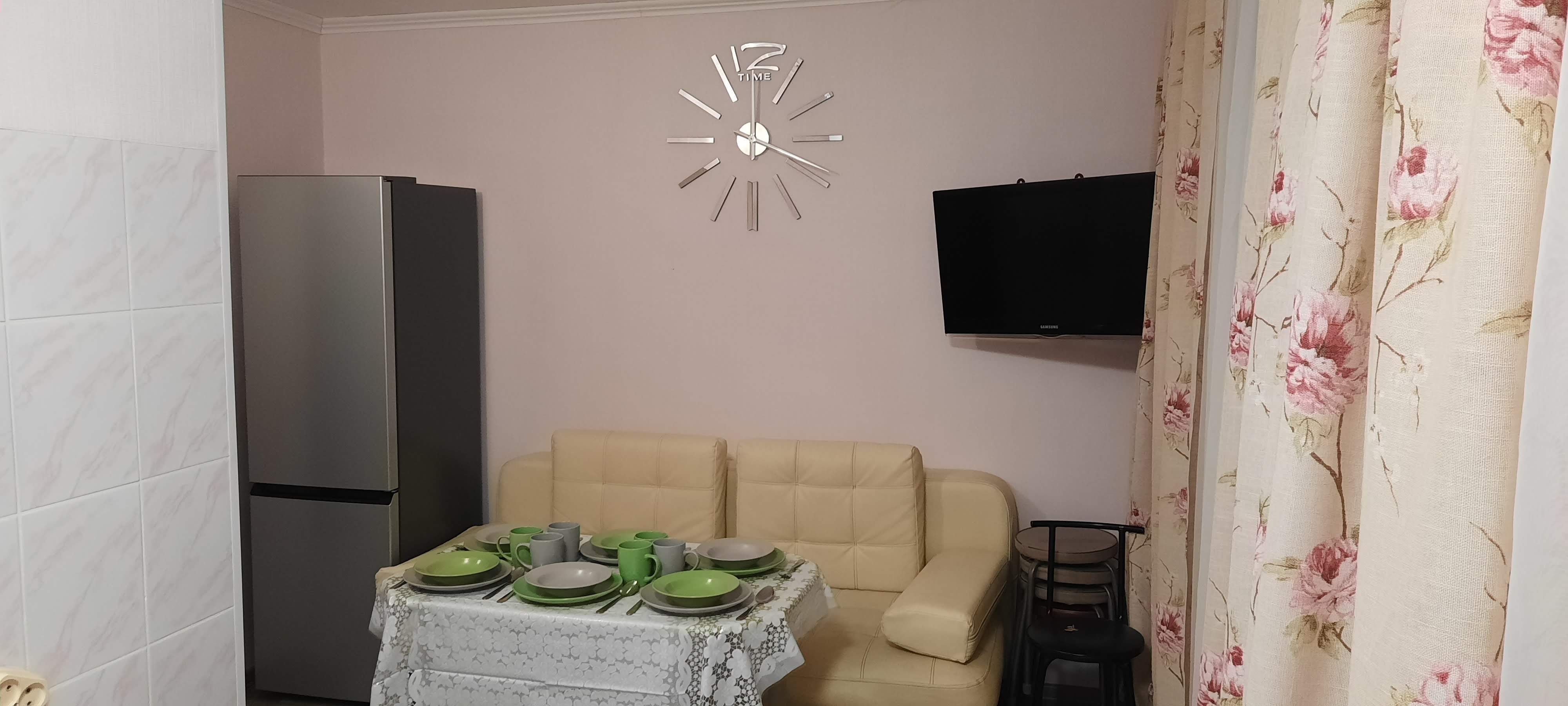 Для Вашего удобства мы предоставляем все необходимое для комфортного проживания. Кухня оборудована посудой для приготовления и приема пищи, что позволит Вам готовить любимые блюда. В Вашем распоряжении чайник и микроволновая печь для быстрого приготовления горячих напитков и разогрева еды. Электроплита с духовкой и конвекцией позволит Вам экспериментировать с кулинарией, а холодильник обеспечит сохранность продуктов. В гостиной Вы найдете телевизор, который станет отличным развлечением для вечеров в кругу друзей или семьи.