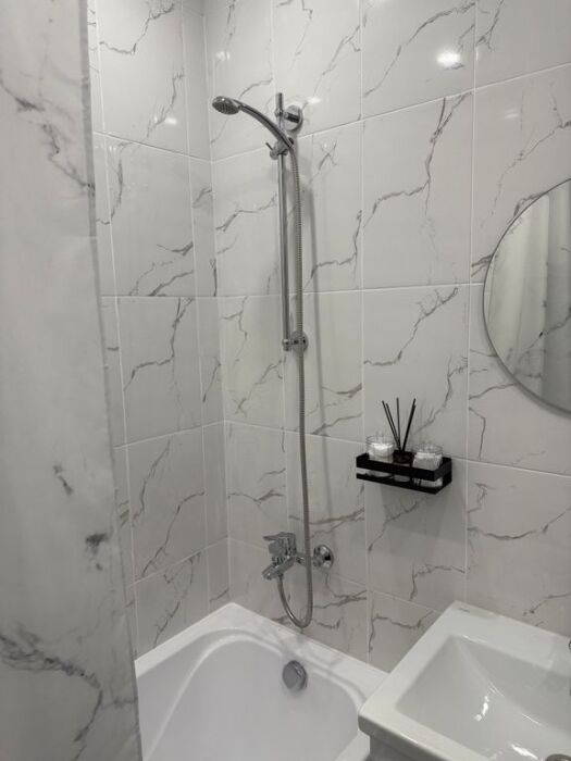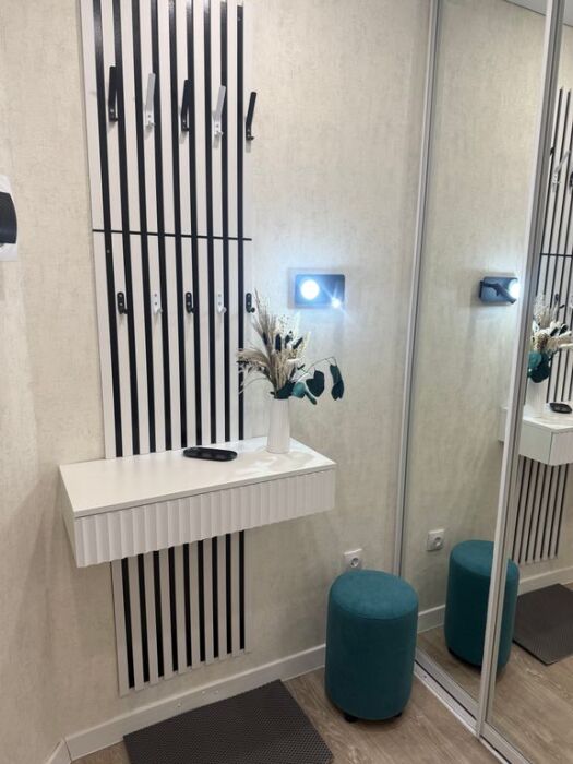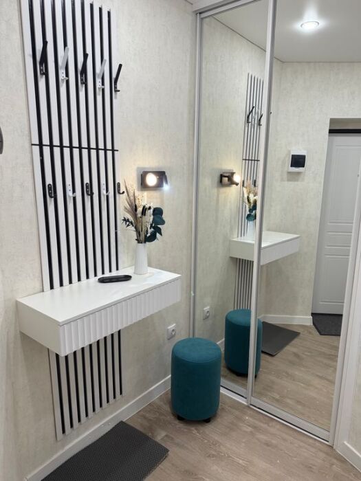 Гардеробный шкаф с зеркалами, удобное прихожее пространство. Смарт-ТВ, Wi-Fi. Стиральная машина, фен, утюг. Современная ванная с душевой.