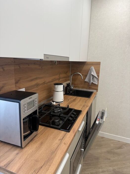 Полностью оборудованная кухня: варочная панель, микроволновая печь, посудомоечная машина(капсулы предоставляю), кофе машина(и вкусный кофе), встроенный фильтр для питьевой воды(чистая питьевая вода в любом количестве), вся необходимая посуда.