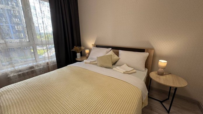 Квартира: 2 комнаты, двуспальная кровать +2 раскладных дивана. Будет комфортно разместиться 2-6 гостям. Для вас готово свежее постельное бельё (100%-й хлопок) и полотенца. В квартире есть ванна.