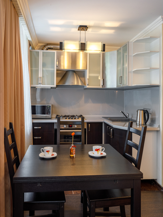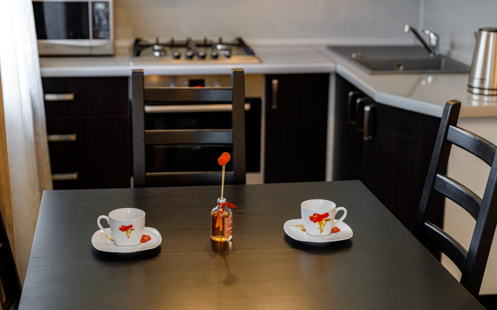 В апартаментах есть всё самое необходимое: телевизор, Wi-Fi, фен, утюг, стиральная машина, чайник, микроволновая печь, плита, холодильник, столовые приборы и базовая посуда, чай и кофе. Мы предоставляем нашим гостям полотенца, гель для душа, свежее постельное белье и тапочки.