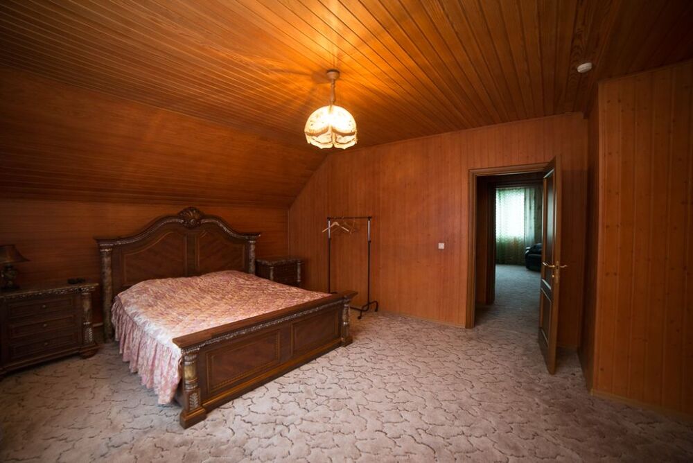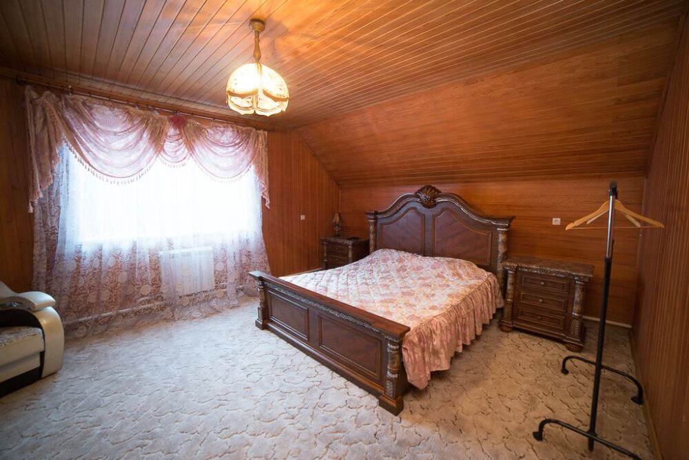 На 1 этаже просторная (35м2) кухня с большим столом, что позволит разместиться большой компании, французские натяжные потолки, хрустальные люстры - на кухне и в зале. Отдельно от кухни на 1 этаже большой зал (45м2) в котором: телевизор, караоке, камин, большой диван (раскладывается). Все комнаты в коттедже большие - 30м2. В каждой комнате туалет + ванная (10м2).