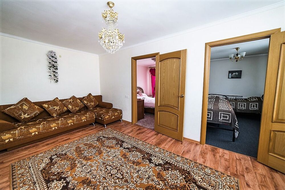 В апартаментах 7 спальных мест. Импортная мебель, tv, видео, музыкальный центр. Кухня + столовая. Евроремонт, пластиковые окна - всё красиво и чисто.