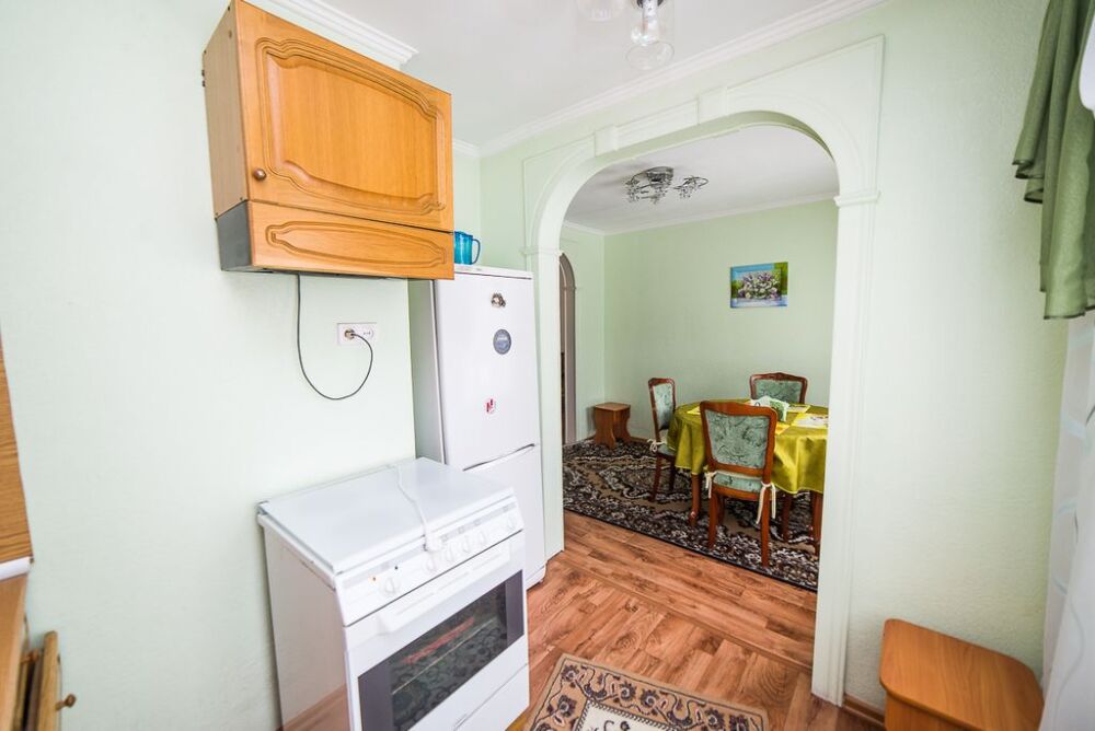 В квартире: телевизор, стиральная машина, фен, микроволновка, шахматный компьютер, вся посуда (как дома у Вас, даже в избытке), рюмки, фужеры, бокалы на 7-8 человек, чтобы посидеть хорошей компанией и пообщаться после горы.