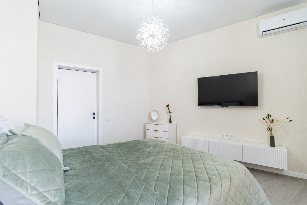 - 3 SMART TV, кондиционеры, стиральная машина, микроволновка, чайник, фен, утюг.