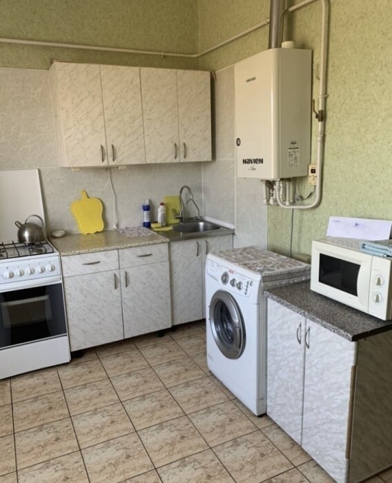 Просторная кухня. Всё необходимое для проживания есть, горячая и холодная вода всегда, газовая плита, вся необходимая посуда, стиральная машина, микроволновка, телевизор, интернет wi-fi. В квартире 4 спальных места.