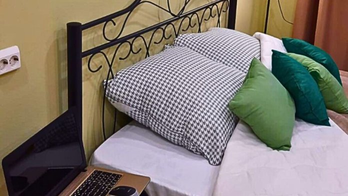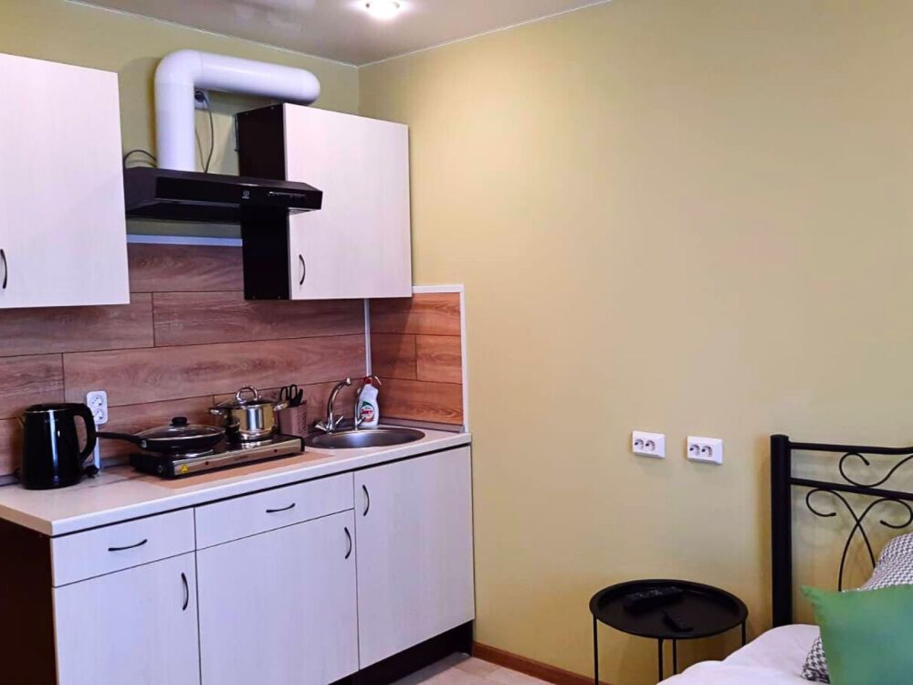 В квартире могут разместиться до 2 человек, большая двуспальная кровать.