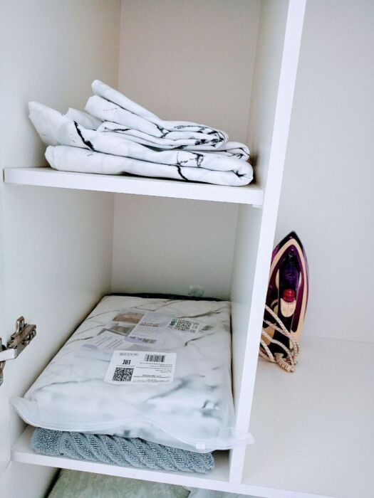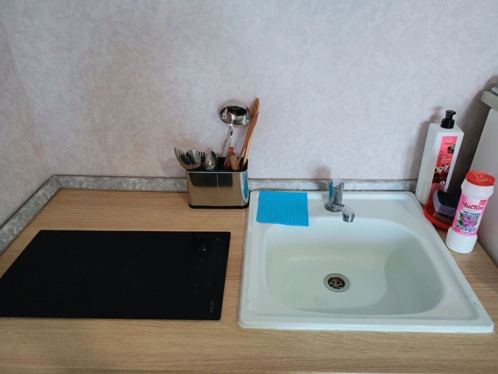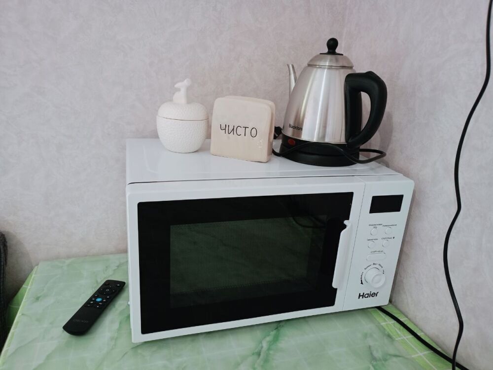 - холодильник, стиральная машина, электрический чайник, электрическая индукционная плита , утюг, гладильная доска, фен;