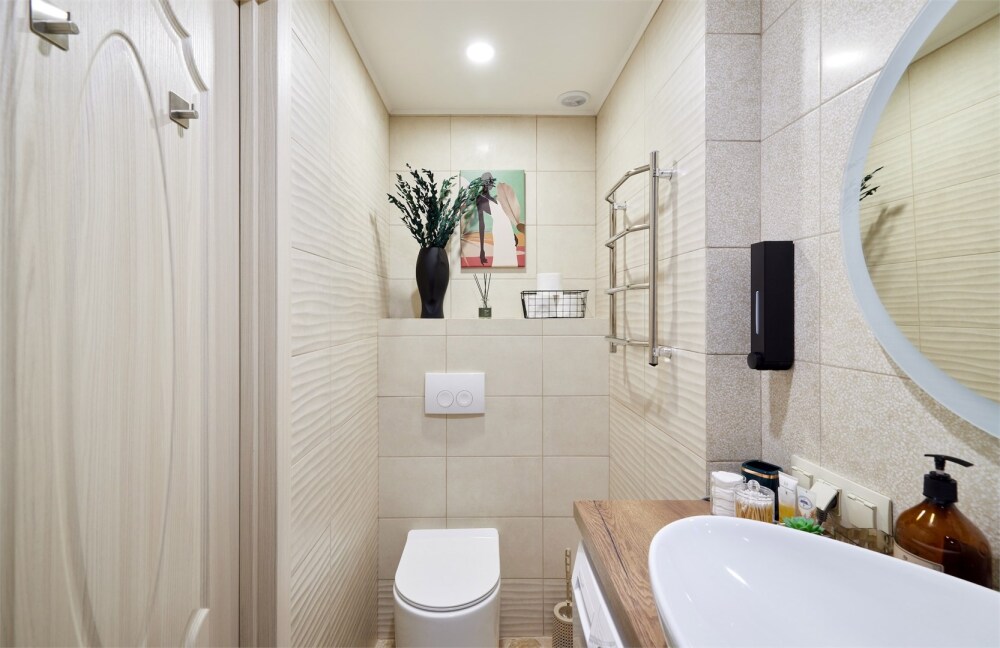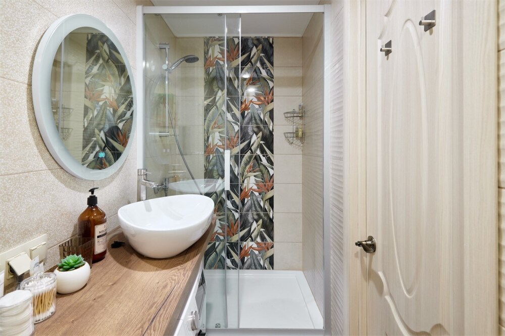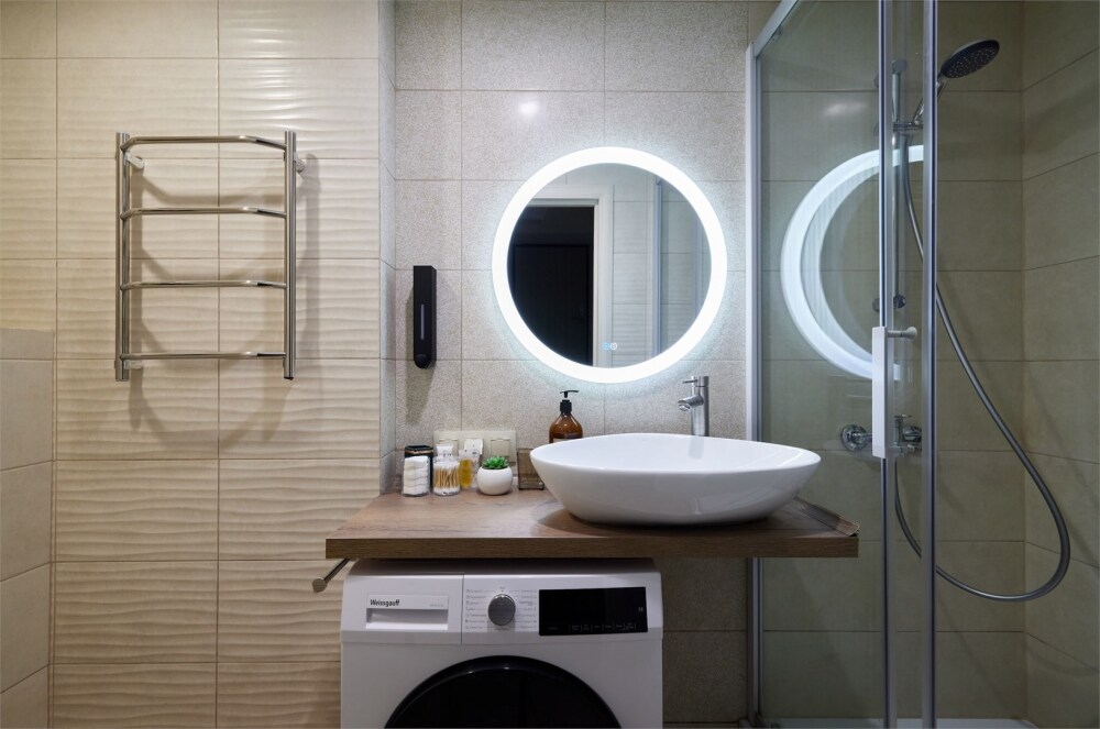 - Совмещенный санузел с душевой кабиной и ванной.