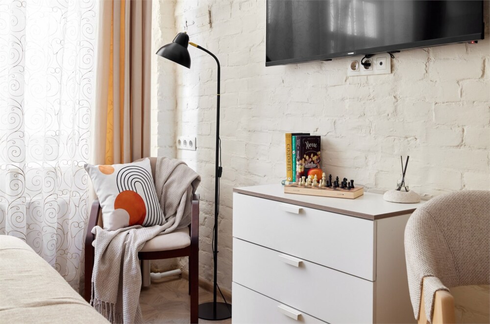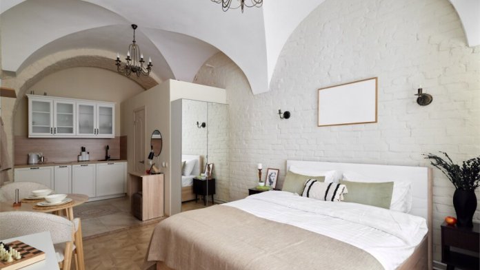 Просторная и стильная студия с дизайнерским интерьером в Центральном районе Петербурга у Московского вокзала