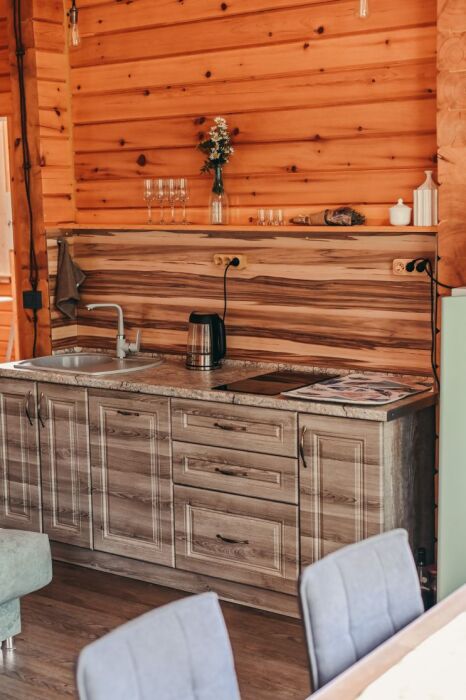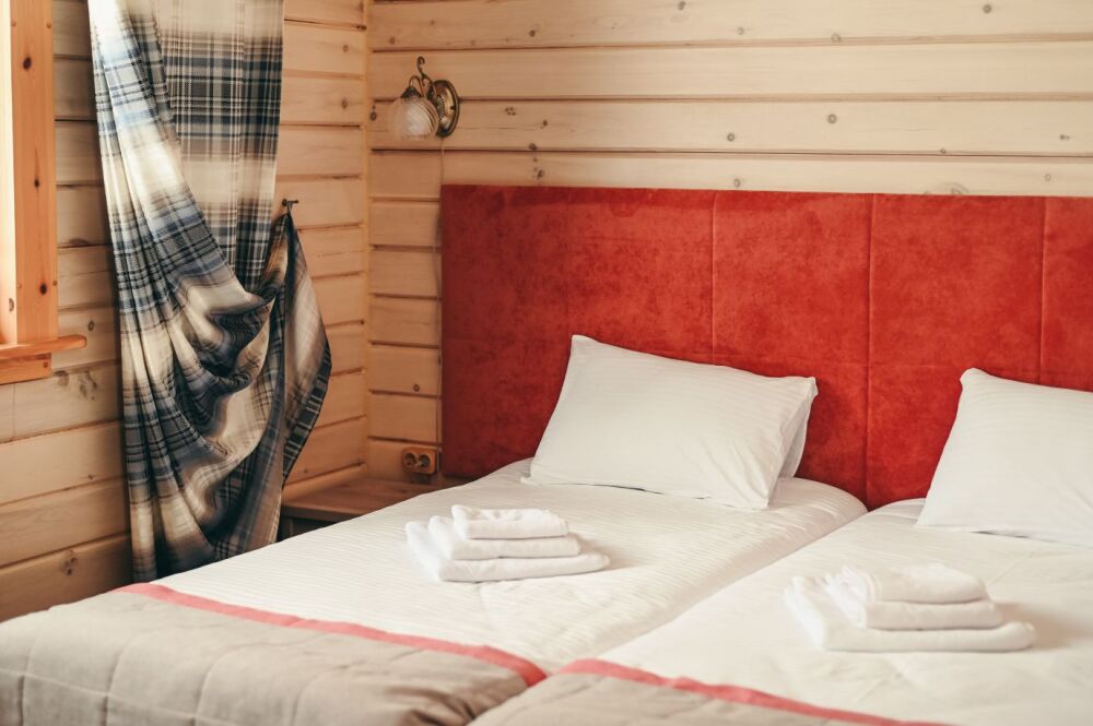 Каждое шале вмещает в себя 4 основных места (взрослые) и 2 дополнительных места на уютном диване в гостиной комнате.