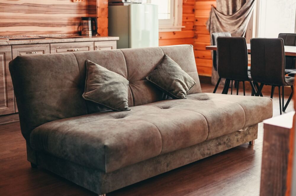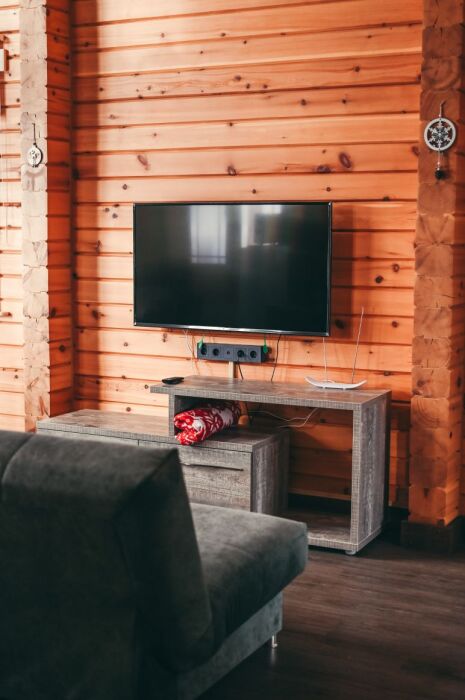 - Просторная гостиная с французскими окнами, диваном (разбирается, дополнительное место для 2-х человек), телевизор со Smart TV.