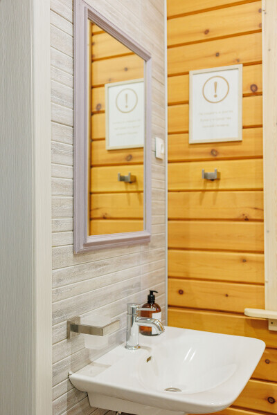 Теплый пол, душ, раковина, фен, комплект полотенец для каждого гостя, туалетно-косметические принадлежности.