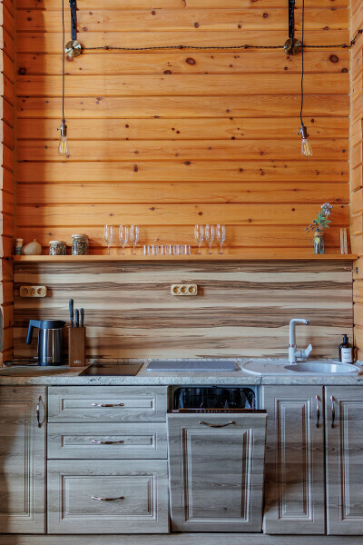 Уютная оборудованная кухонная зона. Так же в Вашем распоряжении посудомоечная и стиральная машина.