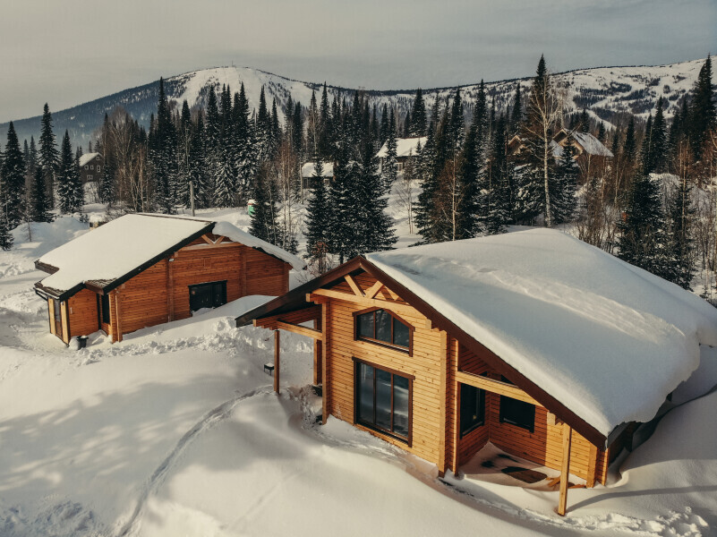 Три идентичных шале из кедра в живописном месте у подножья сектора Б.