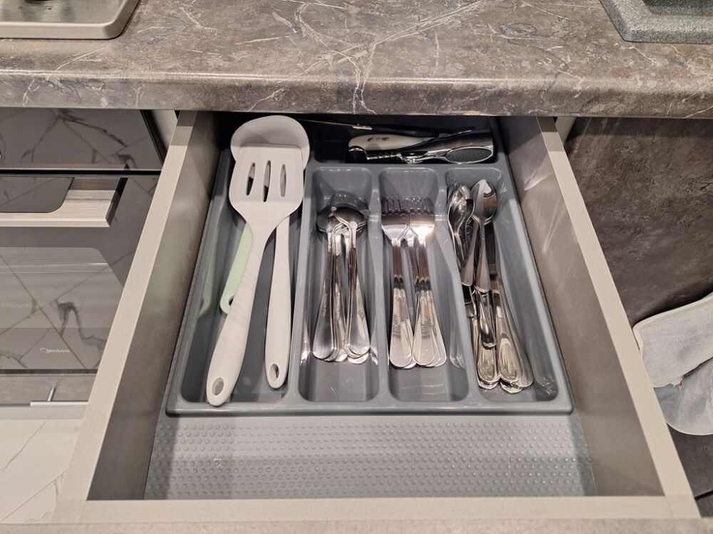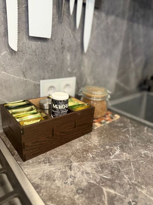 - кухня с холодильником, посудомоечной машиной, плитой и духовым шкафом, микроволновой печью, чайником и полным комплектом посуды. Чай, кофе, специи.