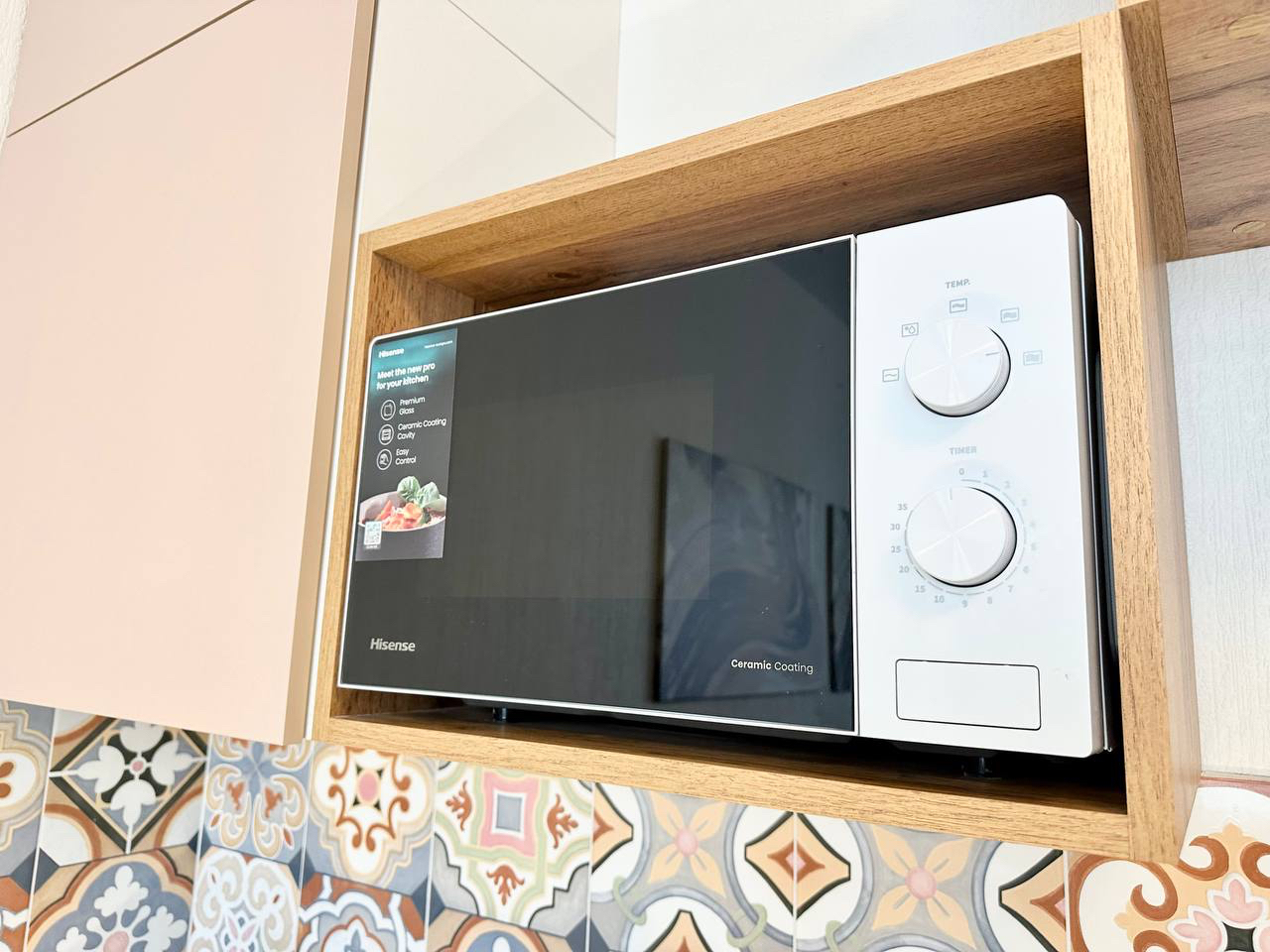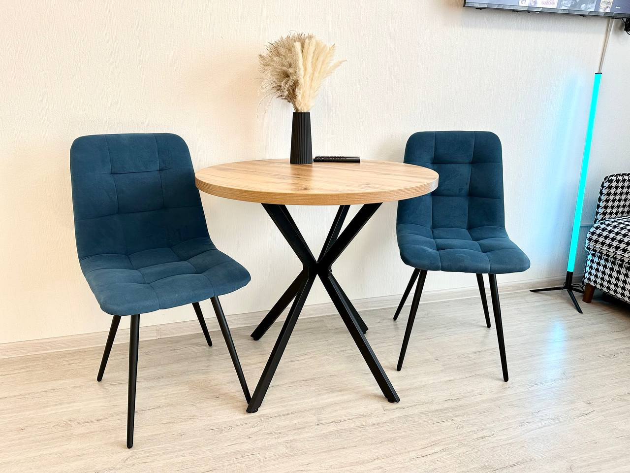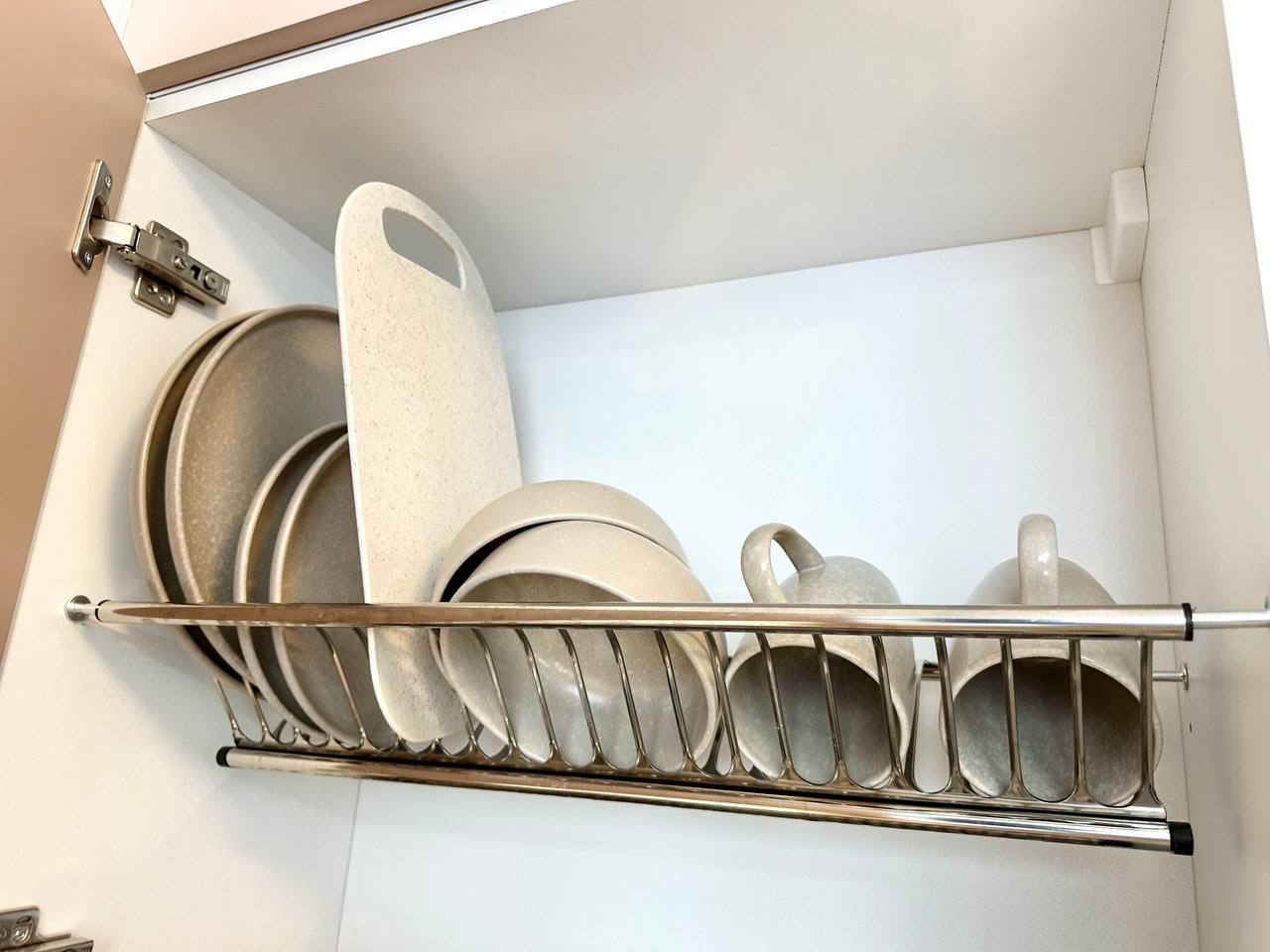 - Удобная обеденная и кухонная зона с набором посуды, плитой, микроволновой печью;